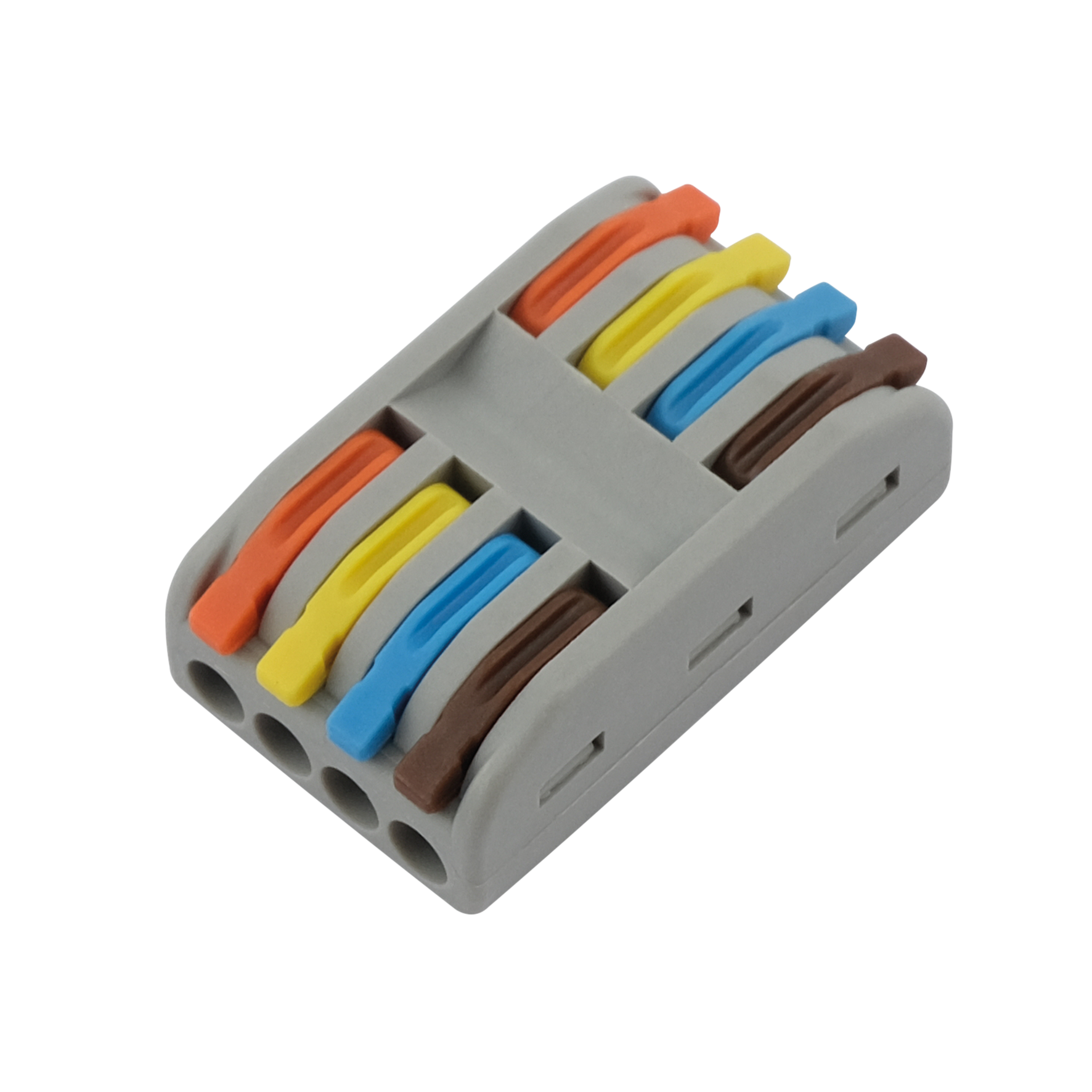 Beidseitig farbcodierte potential-getrennte Hebelklemmen zum einfachen Verlängern und Verzweigen von Leitungen.Kabelquerschnitt0.14 - 4.0 mm2