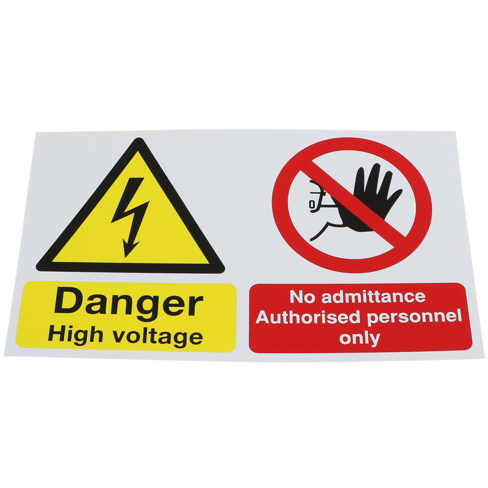 Kunststoff-Warnschild für Arbeiten an Hybrid- und Elektrofahrzeugen Sujet/Text: Danger High Voltage, no admission. Sprache: englisch Grösse: 500 x 300mmAbmessungen500 x...