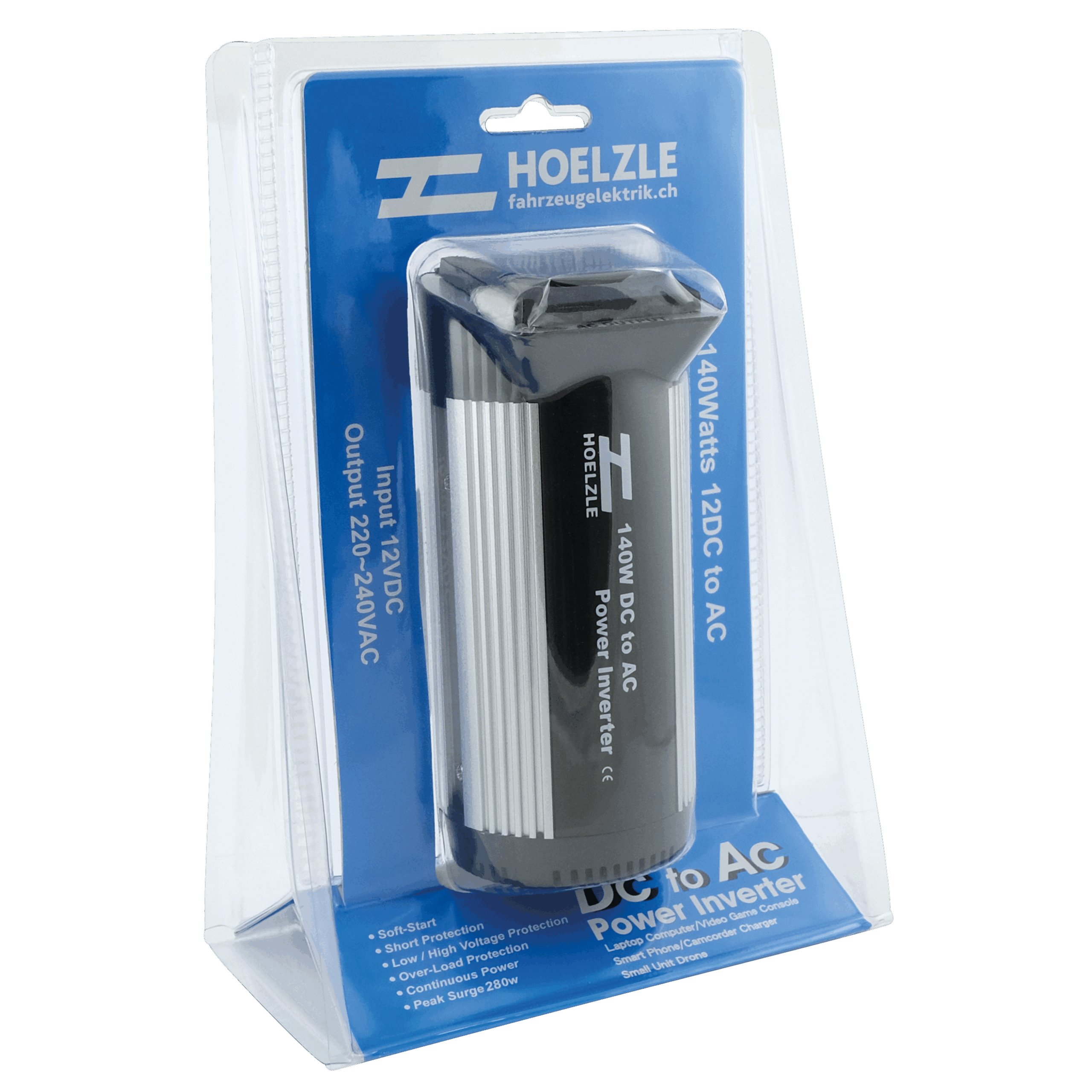 Unterspannungsschutz: 9.5 V (+/- 1 VDC) Standby-Stromaufnahme: ca. 0,4 A Verpolungsschutz SanftanlaufEingangsspannung10 - 15 VDCAusgangsspannung230 V ACLeistung140 W (peak 280...