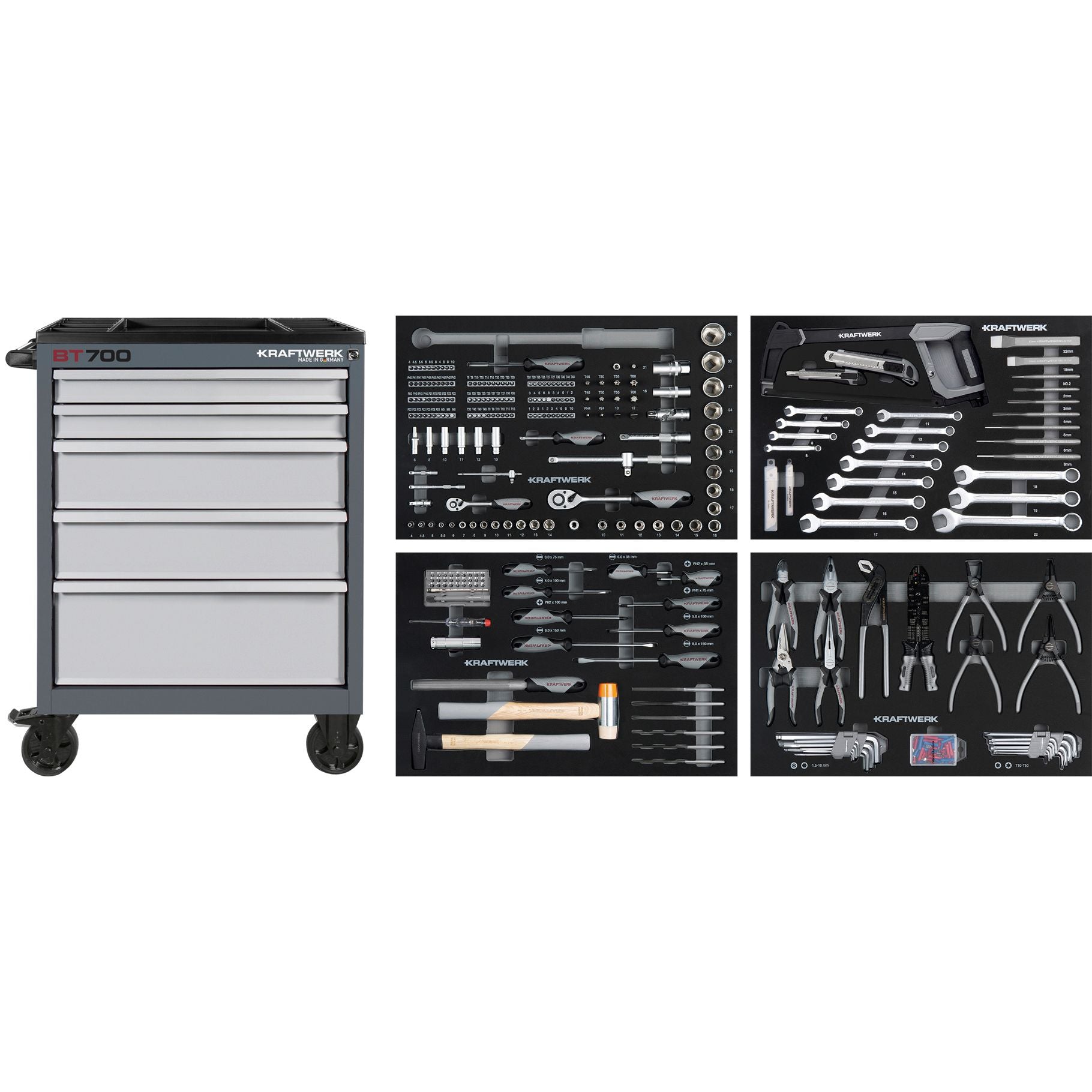 Anwendungsbereich: Ausstattung / Einrichtung BT700 Werkstattwagen, 7 Schubladen, BASIC, 337-tlg. MADE IN GERMANY 337 ausgewählte Werkzeuge in 4 EVA Werkzeug-Einlegeschalen...