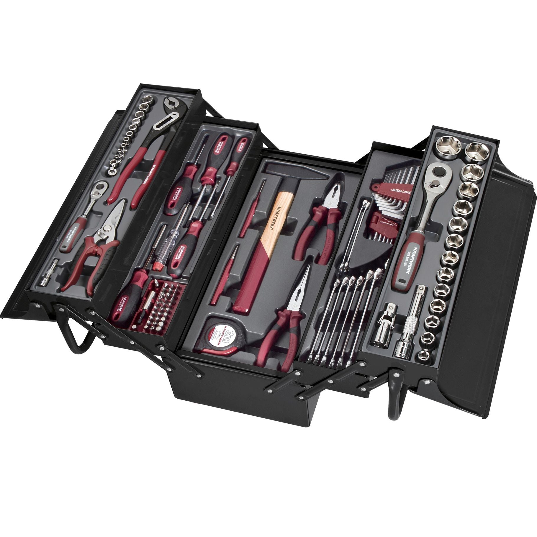 Werkzeugkiste, bestückt, schwarz, 1/4 + 1/2, 106-tlg.