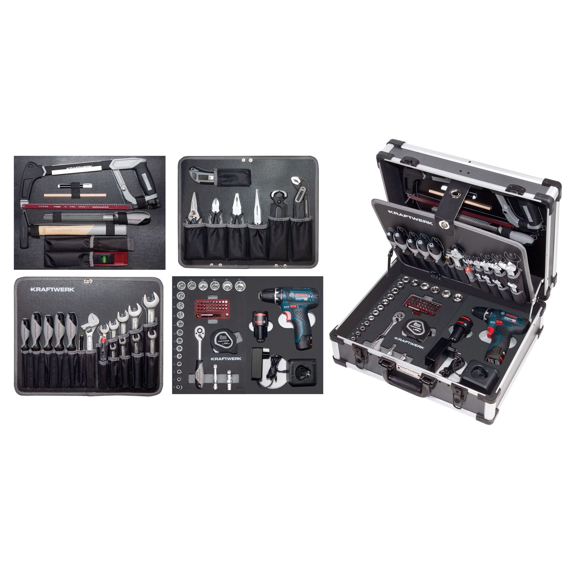 Anwendungsbereich: Werkzeugkoffer, Taschen, Kisten Werkzeugkoffer B147, 3/8, 100-tlg. mit Powertool Bosch Bosch Bohrschrauber 12V, 1500 mAh Ring-Maulschlüssel 8 - 22...