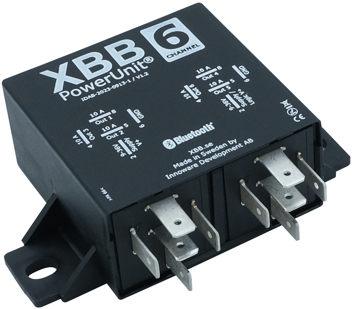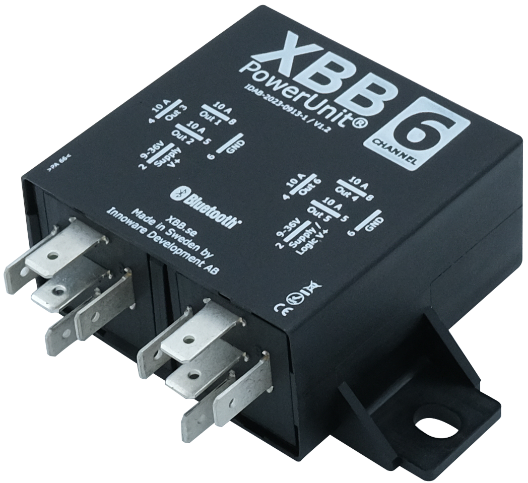 Das Modul stellt sechs einzeln steuerbare Ausgänge mit jeweils 10 A bereit. Zusätzlich ist es möglich, mehrere Ausgänge zu bündeln, um höhere Lasten zu schalten. Die Signalauswertung und Zuweisung erfolgt über die App XBB Configurator, verfügbar für Android und iOS.
