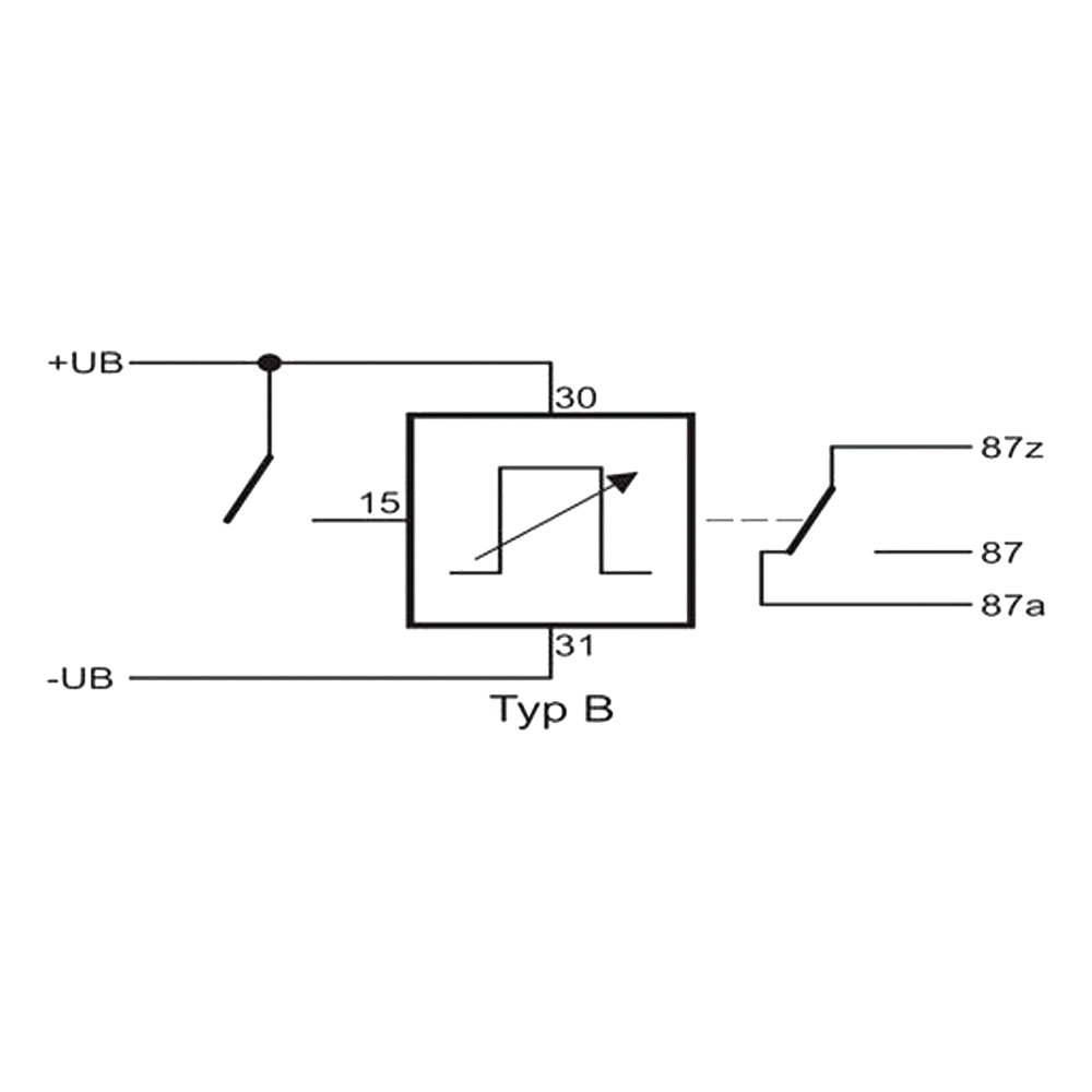 Bei Abschaltverzögerung gilt die eingestellte Zeit ab Unterbrechung des Steuerungssignals (Dauersignal oder Impuls). Z.B. wenn die eingestellte Zeit 20 Sek. beträgt und der Impuls 5 Sek. dauert, dann ist die Gesamtzeit 25 Sek. Bei Einschaltverzögerung muss der Steuerungsimpuls dauernd anliegen! Die Schaltung erfolgt von 87z nach 87.